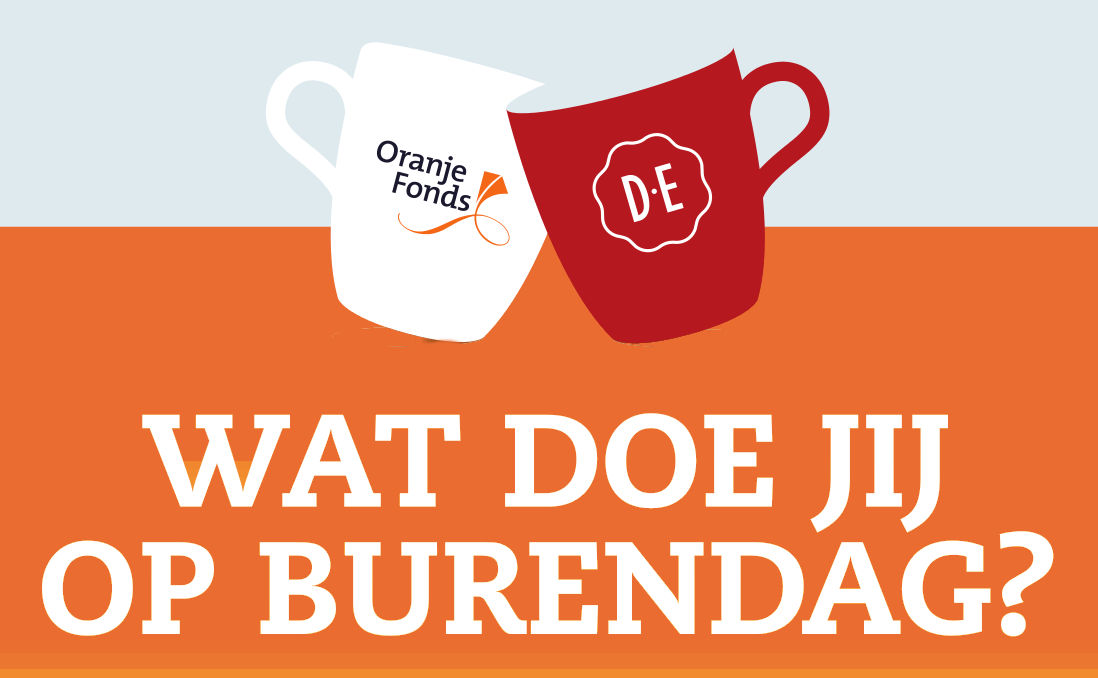 Burendag is een initiatief van Douwe Egberts en het Oranje Fonds en wordt ieder jaar op de 4e zaterdag in september gevierd. Burendag is een dag waarop de buurt gezellig samenkomt en waarbij veel mensen iets goeds doen voor elkaar en de buurt. Goede buren, die doen er namelijk toe! In 2022 vieren we Burendag op 24 september. Meer over burendag kan je vinden op Burendag.nl