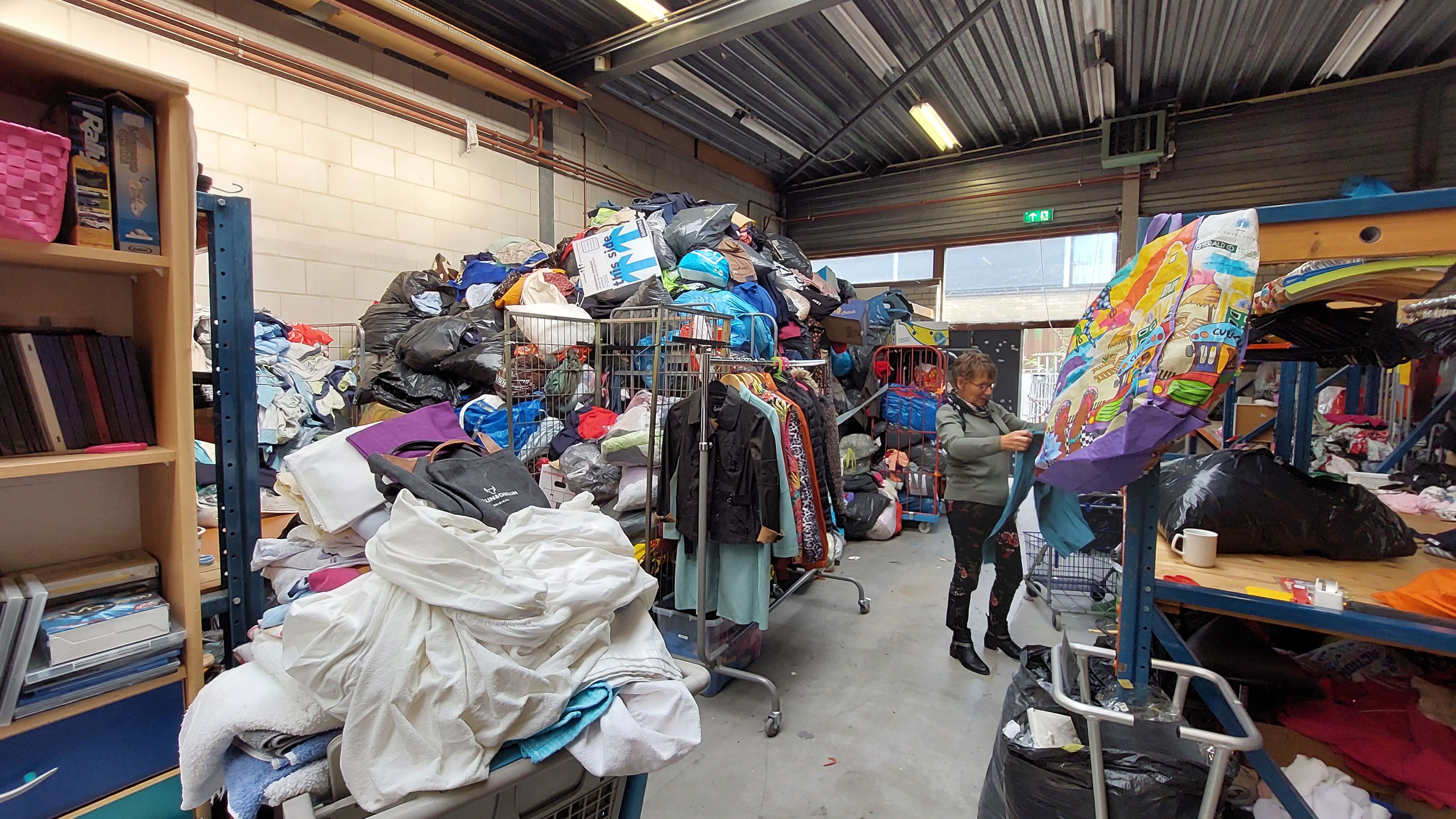 Wilma komt nog even terug op de overvolle tafels met kleding in de winkel. “We hebben dat allemaal niet opgehangen, we willen het weg hebben.” De berg die we in het magazijn zagen, is volgens haar al iets minder groot. “De actie is fijn voor mensen die het niet zo breed hebben. En er zitten echt heel mooie dingen bij. Pareltjes soms.” Dan profiteren zij en haar collega’s er maar wat graag van dat ze de kleding mogen sorteren. “Wij zitten op de eerste rij!”